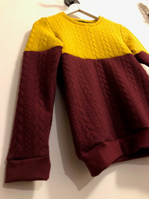 La couseuse de trucs s'est fait deux sweats : un moutarde et un bordeaux. Ah ! Mais tiens ! C'est justement les couleurs de Griffondor ! "Caput Draconis"